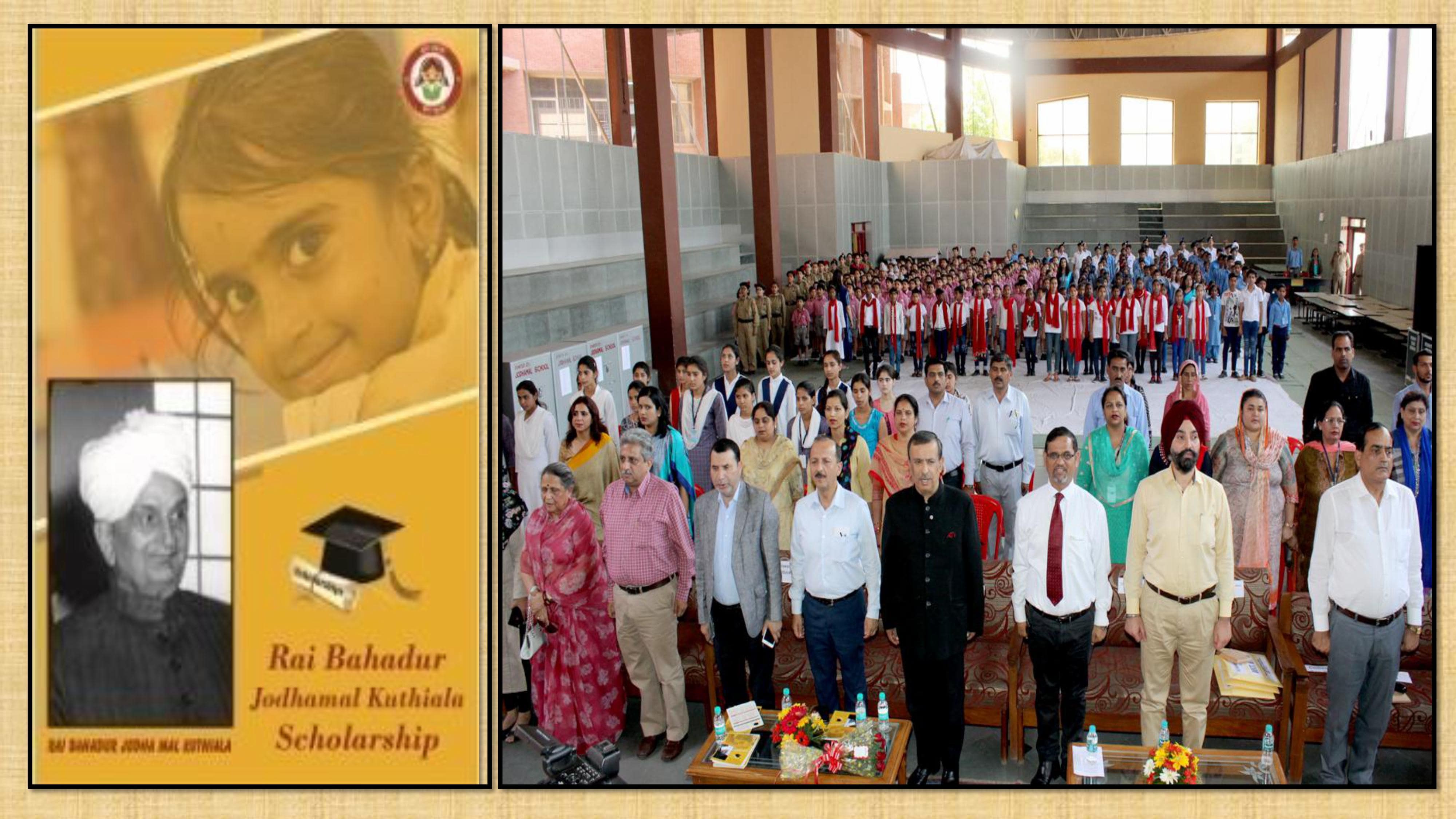 In the recently held function at Jodhamal School the Rai Bahadur Jodhamal Kuthiala scholarship for the year 2018 were distributed. The Chief Guest, Hon’ble advisor to Chief Minister, Prof. Amitabh Mattoo, the Guest of Honour, Secretary Education, Mr. Farooq Ahmed Shah, IAS, Director Education, Mr. Rakesh Srangal, KAS & Joint Director Education, Mr. Charandeep Singh, (KAS)along with the CEO Jammu, Mr. J K Sudan and CEO Samba, Mr. Ram Pal Bal attended the function.