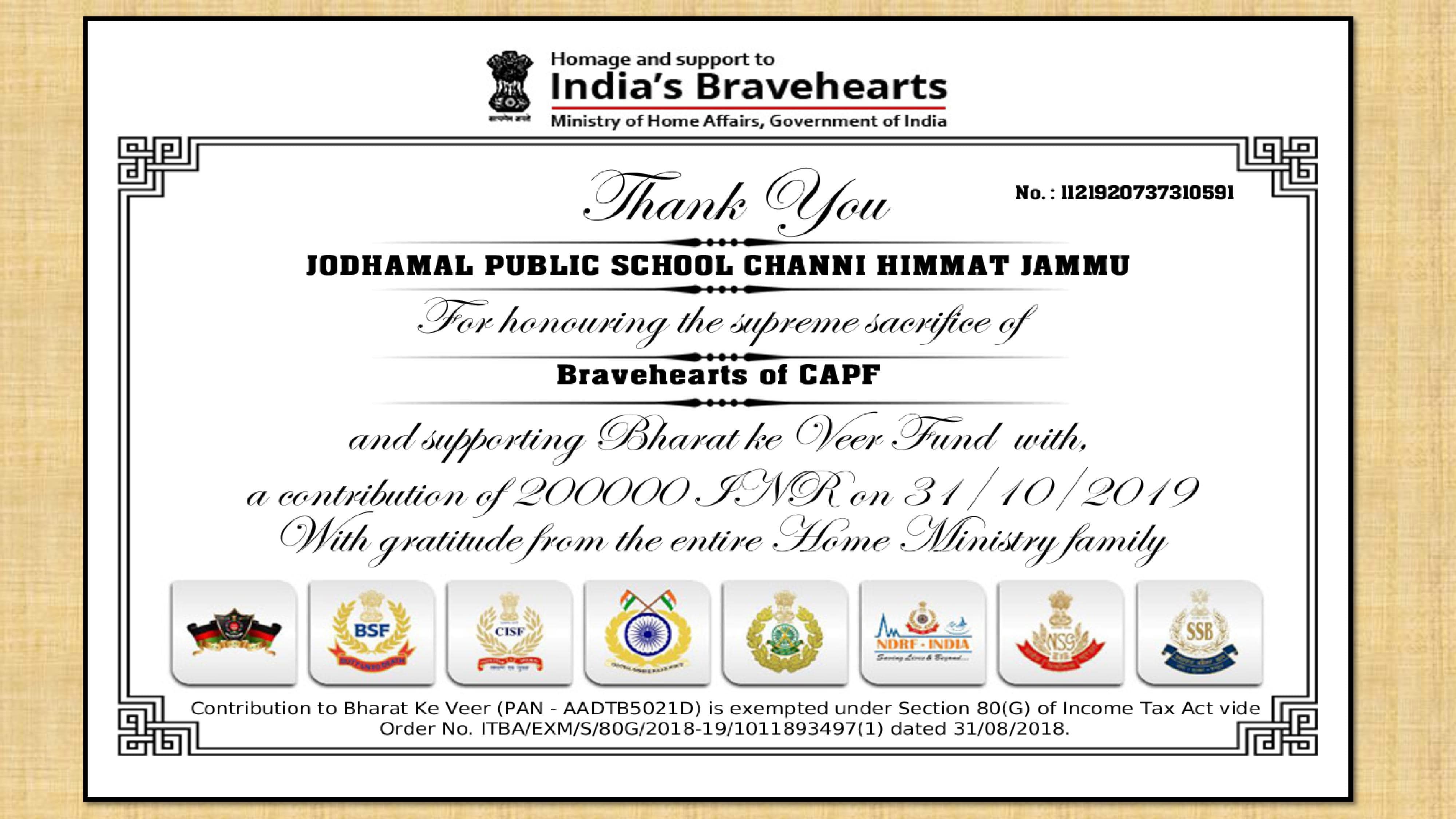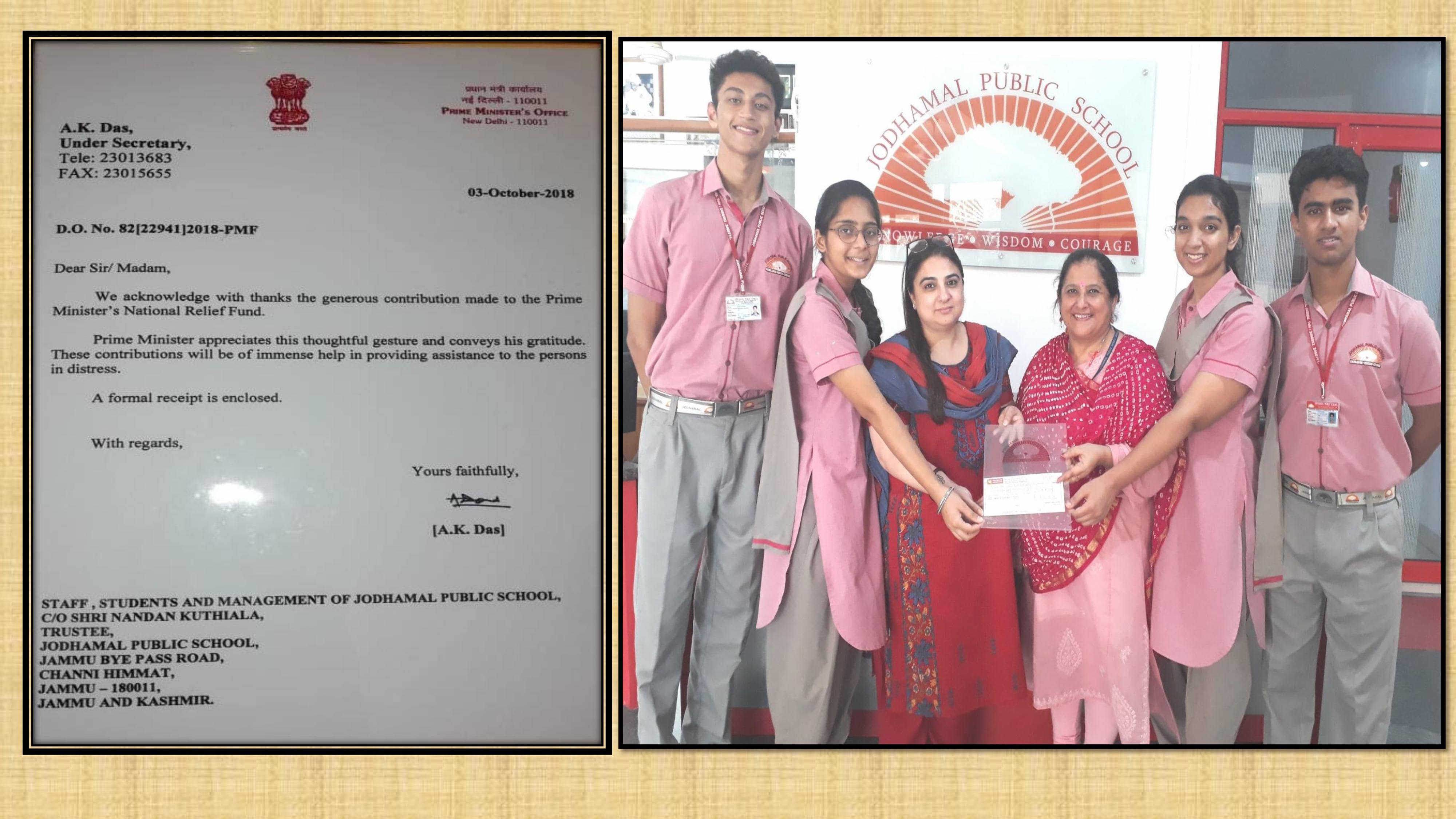 Also Jodhamal School has adopted three Govt. schools namely Govt. High School, Deeli, Govt. Primary School, Sainik Colony, Jammu & Govt. Primary School, Prithvipur for the past few years. Students from these adopted schoolspresented street plays on BetiBachoBetiPadao&Kismattheme prepared by Jodhamal Teachers. Jodhamal School also donated Class Libraries and furniture to all the three schools.